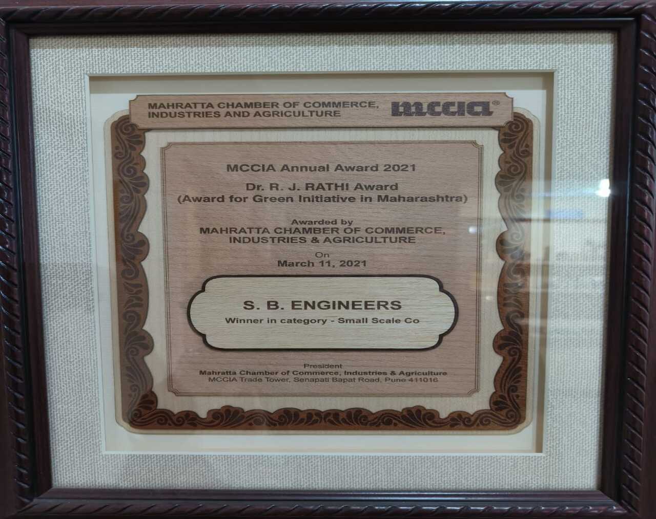 Our latest achievement is winning the MCCIA Dr. R J Rathi Award for Green initiative in MSME category for year 2021-2022.